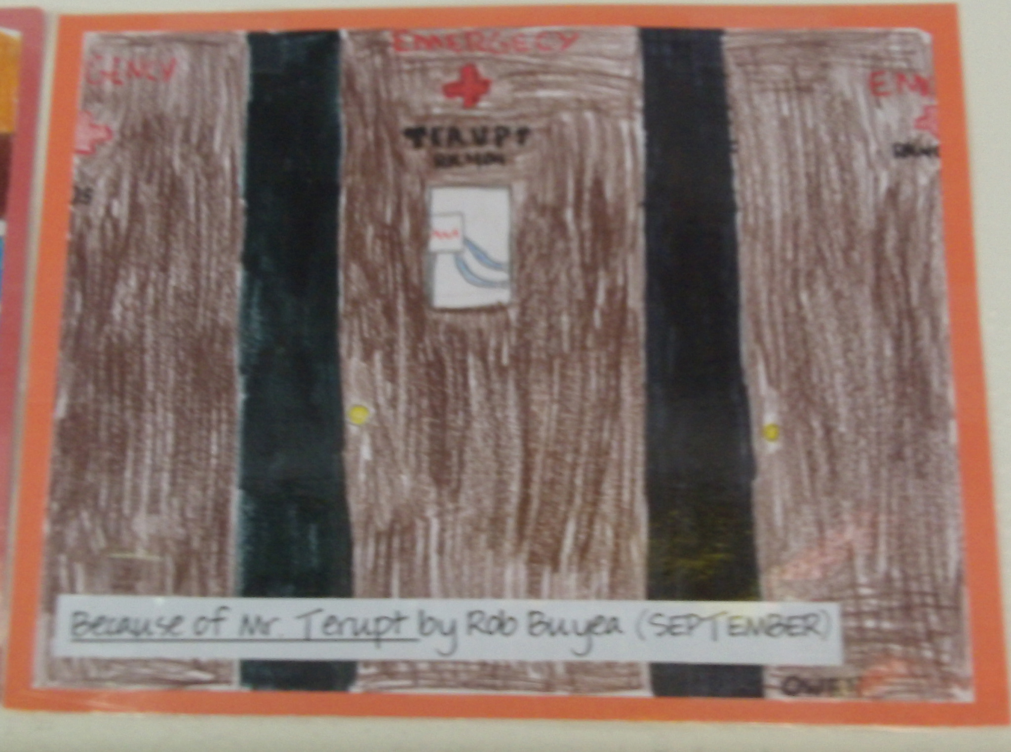 Sorry–I have a curse of blurry pictures I think–but hopefully you can see that it’s a picture of the hospital room where Mr. Terupt spends much of the story and plays a big role in the book.