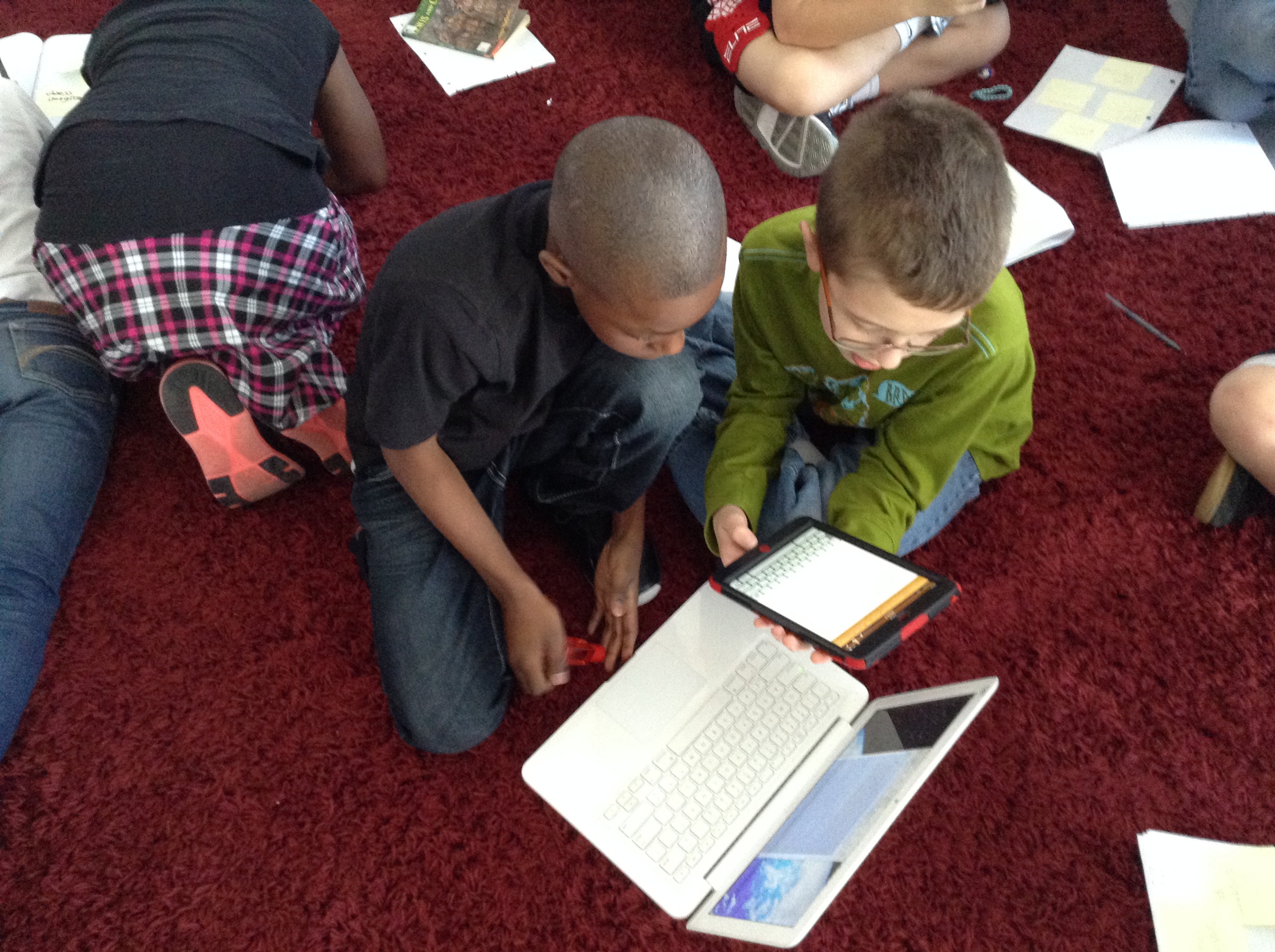 Then, when it was time to draft, we again went to our laptops and iPads. At first when I mentioned that they would flash-draft all 7 paragraphs in one class setting (the 5 topics in their booklet plus an introduction and conclusion), some kiddos were a little freaked out. Once we talked about the benefits of doing the draft this way, and how easy it would become to add, revise and edit their piece along the way, they were ok. This is as far as we got before we left for Winter Break, and we’ll pick up at this point when we return in a few days. What great thinking we started here!
