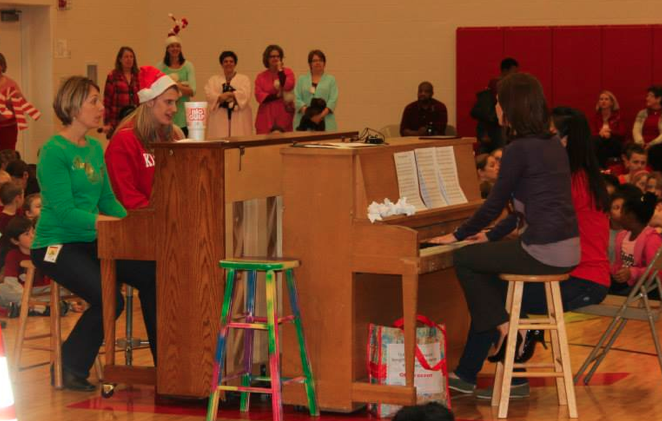 Here are some pics of the fun, including Mrs. Sisul as a Roadrunner, and 4 teachers playing 2 pianos simultaneously. That’s talent, people!!