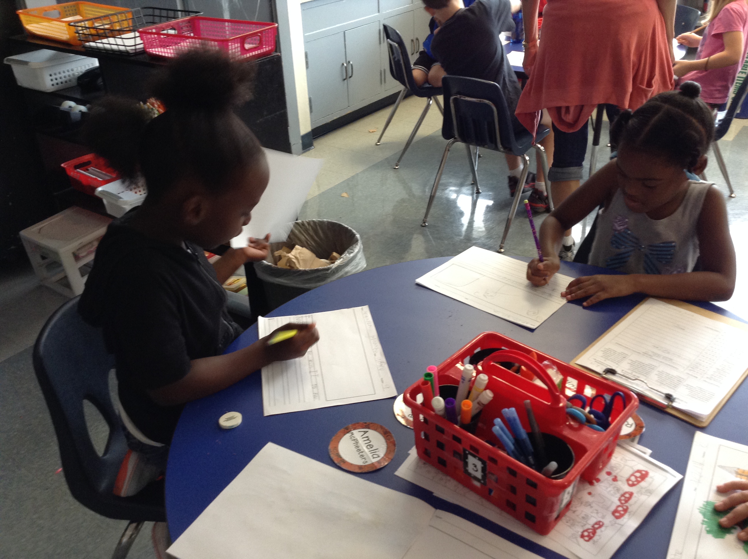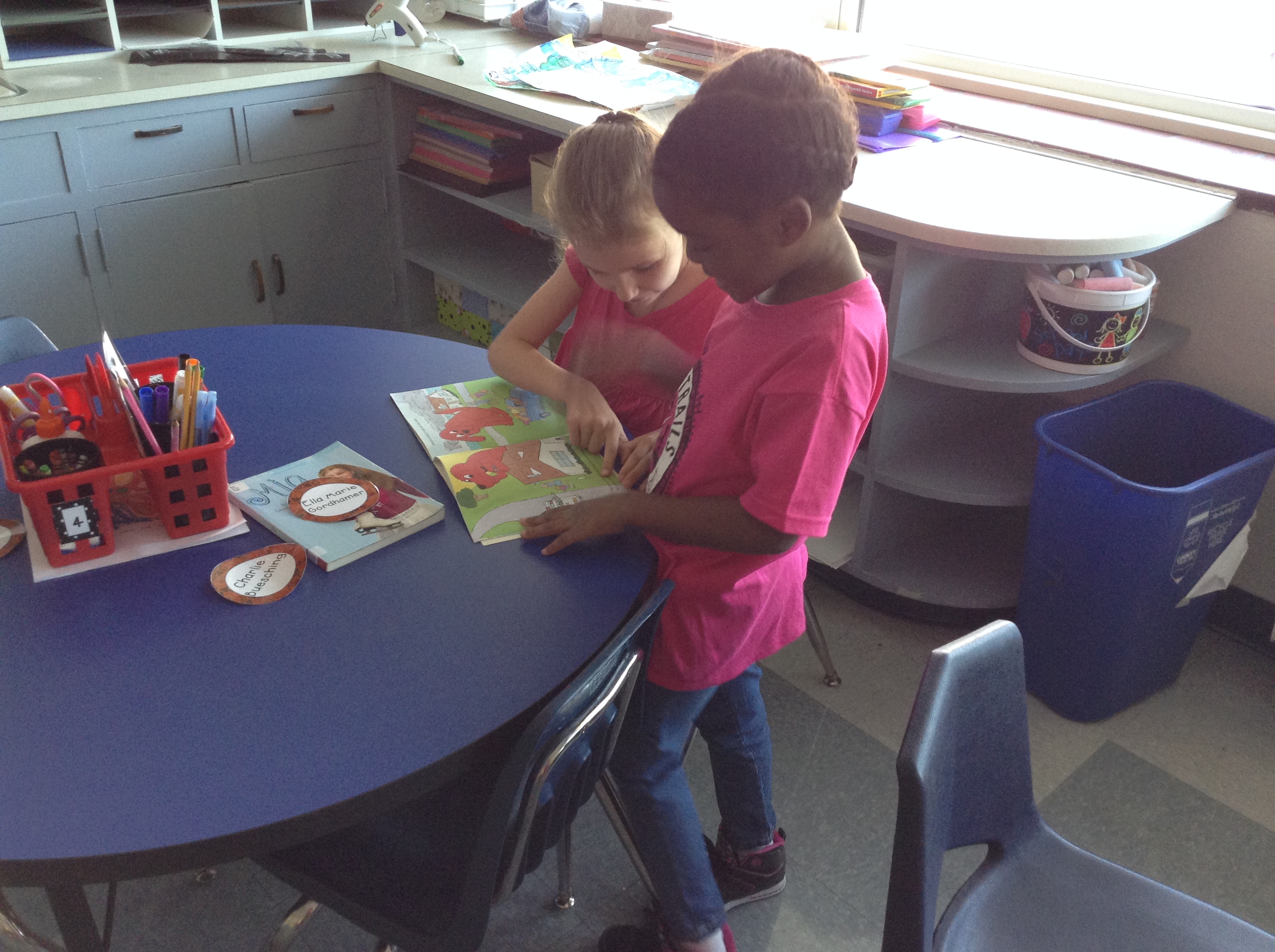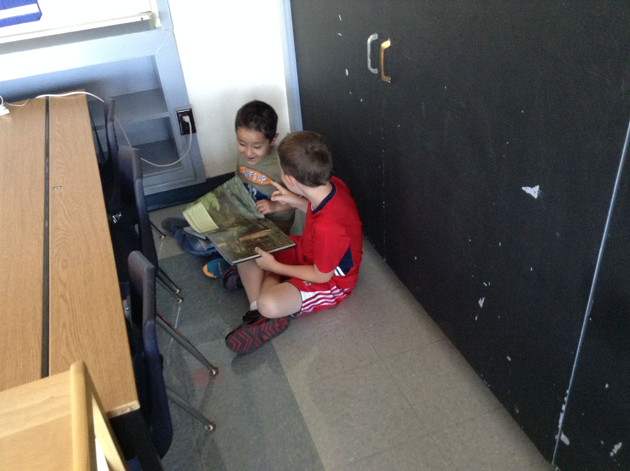 A few days ago we started talking about how good readers sometimes work at getting better by reading to someone else. Before we jumped in with both feet, we had a conversation about what it would look like/sound like to work well while reading to someone. We decided you should be sitting right next to your reading friend, that you should be using quiet voices, and that there are several ways to read with your friend: both of you in the same book, each reader with a copy of the same book, or one takes a turn and then the other. As we go through the year we’ll learn more about how to get better at helping our partner figure out words, as well as how to have deep conversations about the books we’re reading together. For now, though, we’re getting good at the routine of read-to-someone, and having fun working on reading with our friends!