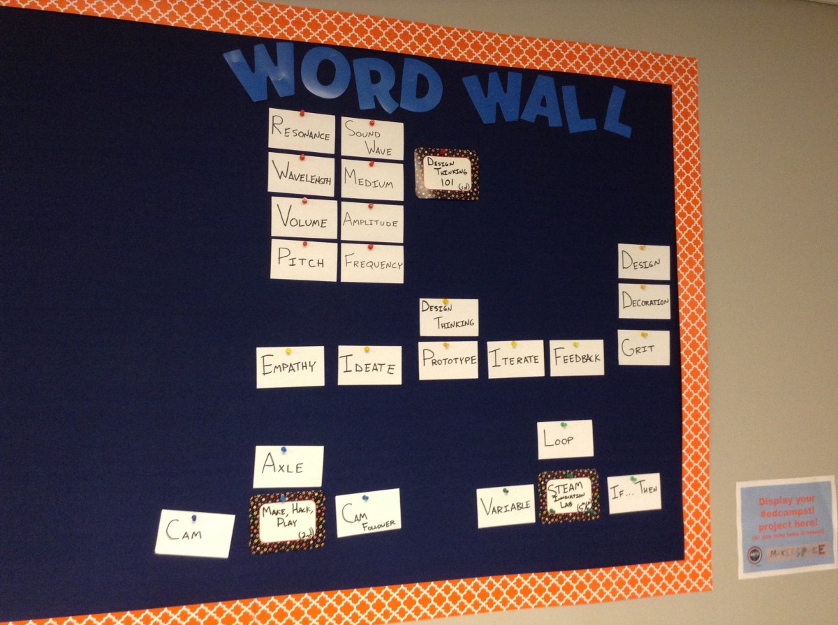 IMG_4264 Published February 16, 2015 at 2592 × 1936 in #edcampstl (2015) ← Previous Next → Such a great idea–makerspaces and design spaces have domain-specific words that kids need to know.