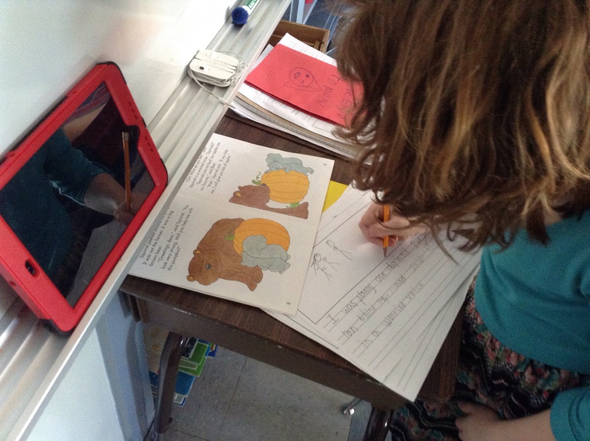 IMG_4667 Published May 13, 2015 at 2592 × 1936 Emily thought of a really great sentence she had read in a book that she wanted to include in her story. Talk about resourceful!