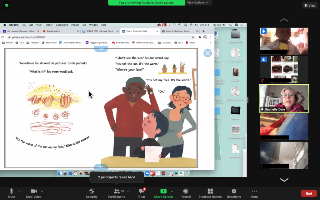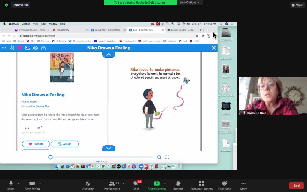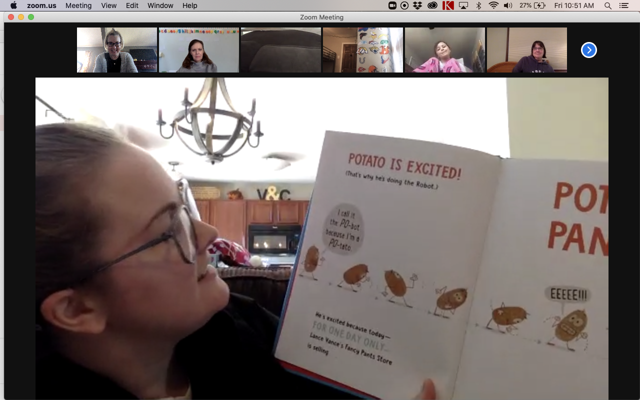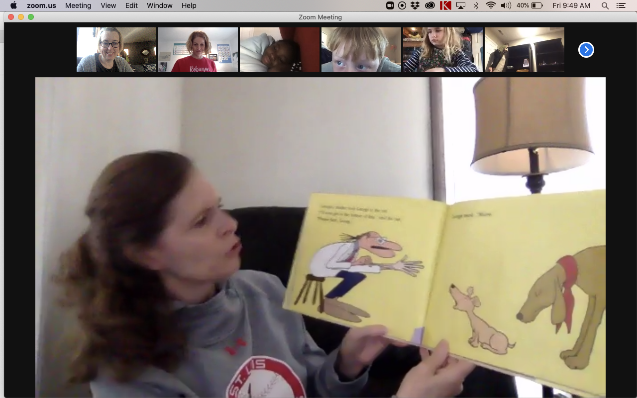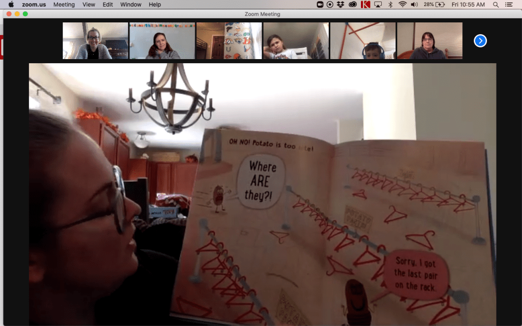 After a break for lunch and some rest or play time on their own, we came back together, this time in our Zoom room! It was my turn and then Mrs. Dale shared a story, too.