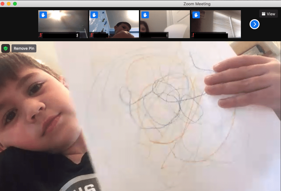 After that many super read alouds, we were ready to use our brains in another way. Mrs. Stephens shared a fun activity with us, that started in the main room and then we did in small group breakout rooms. We did a Spot the Difference game she had found on YouTube. There are two pictures and we had to –you guessed it!–find the differences between the two pictures. What fun! This activity was definitely a hit and one we’ll do again when we have a chance!