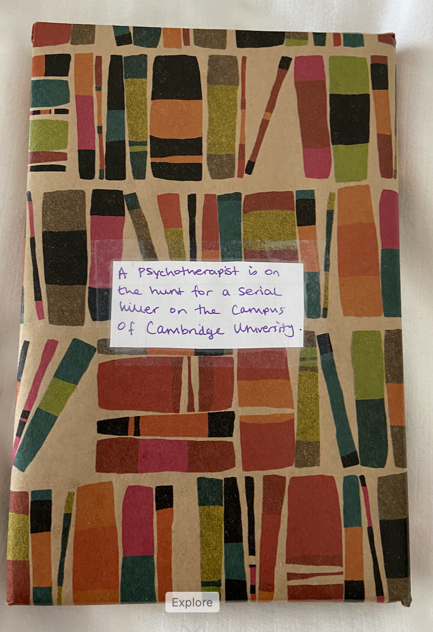 I went ahead and covered the door in blue paper, which was supposed to look like the cover of the book. See?