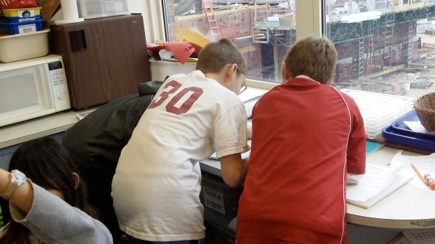 Thanks to many generous parents who donated LOADS of things, we were able to work together with out friends in RM. 112 to make two whole crockpots full of friendship soup, which was actually PHONICS friendship soup, full of letters thanks to a recipe from our good pal, Rasheed. In the morning of our last day before we left for our long Thanksgiving break, we put it all in the pot to let it simmer while we worked on other things. It was fun to see what kiddos already knew about cooking, like who had heard of the spices we were using or who knew how to open a can with a can opener. It’s one of my most favorite things about cooking with kids–connections to real life and skills they’ll use forever! 🙂 And they did a great job with following the recipe and man did it start to smell good!!